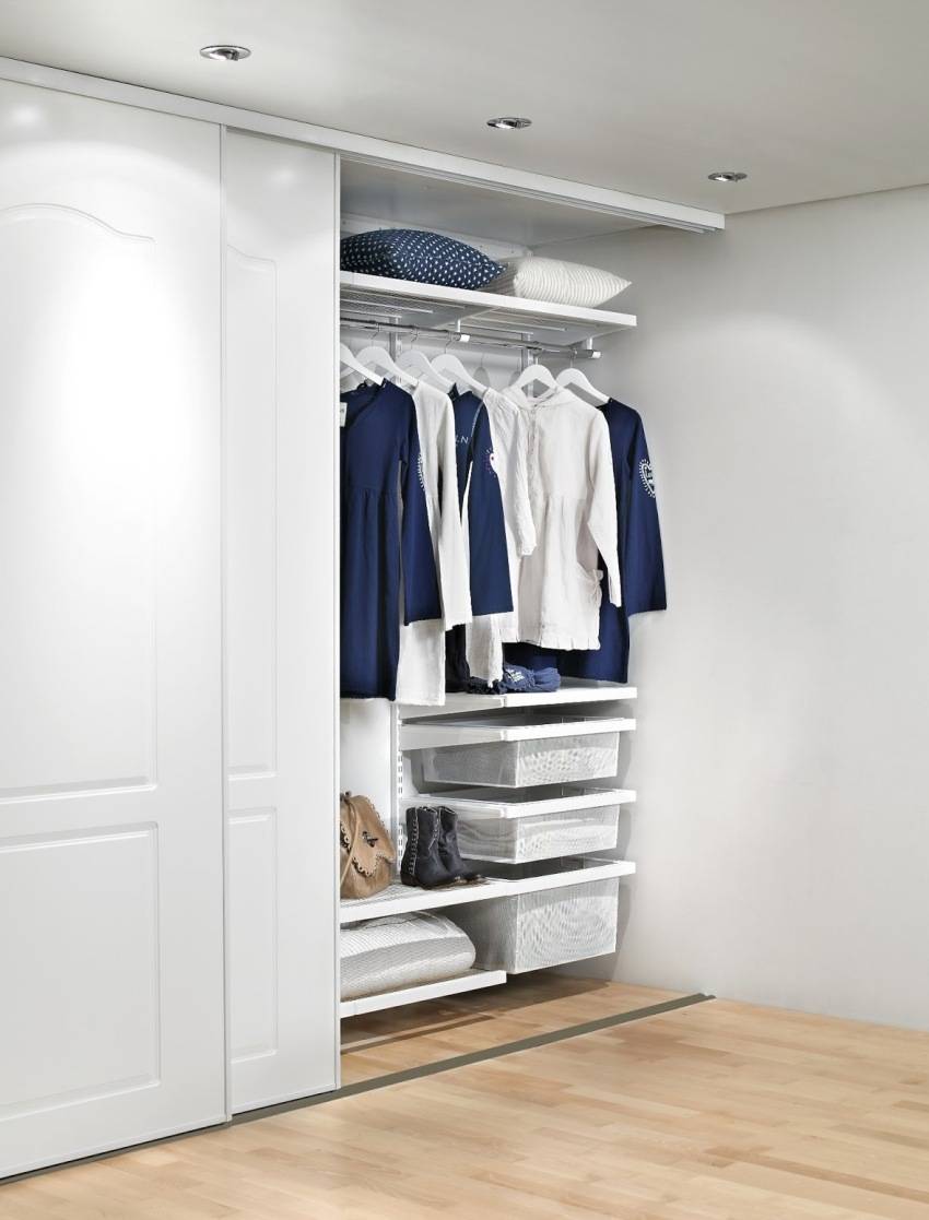 Если вещей не так много, вероятно стоит вовсе отказаться от идеи шкафа-купе и заменить его на что-то более компактное, мобильное — пенал или комод.