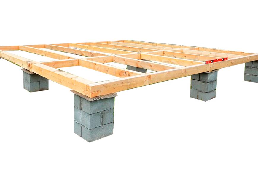 - При необходимости под лаги необходимо подкладывать заготовленные куски бруса или доски.