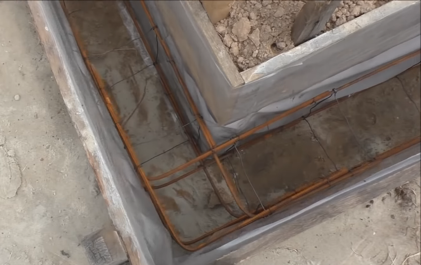 - Под стены выкопать траншею шириной не менее 35 см, а в глубину не меньше 1,5 м.