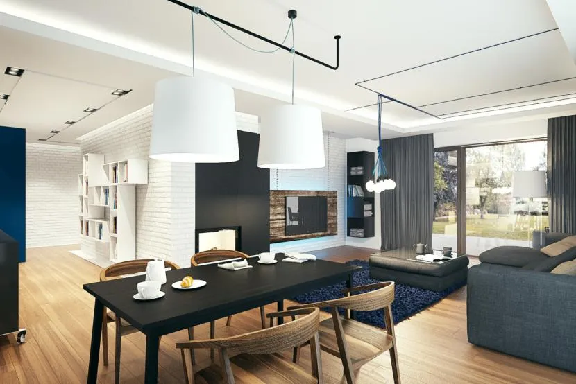 Хозяевам, размышляющим, как оформить обеденную зону на кухне, полезно обратить внимание на независимую подсветку. Лампа над столом не только зонирует помещение, но и делает его уютнее, а еду – аппетитнее (особенно, если выбрать лампу тёплого света)