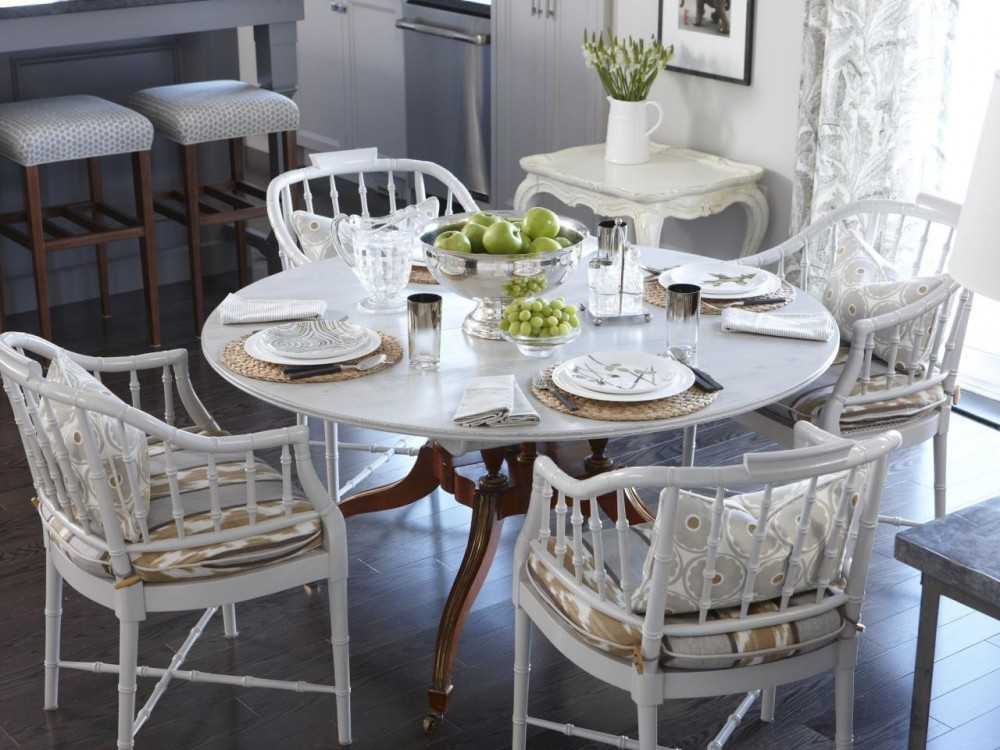 - Стулья должны легко чиститься, им не нужны полумягкие или мягкие сиденья с тканевой обивкой, если жесткое вам не подходит, выбирайте обивку из кожи или моющейся ткани, за которой легко ухаживать.