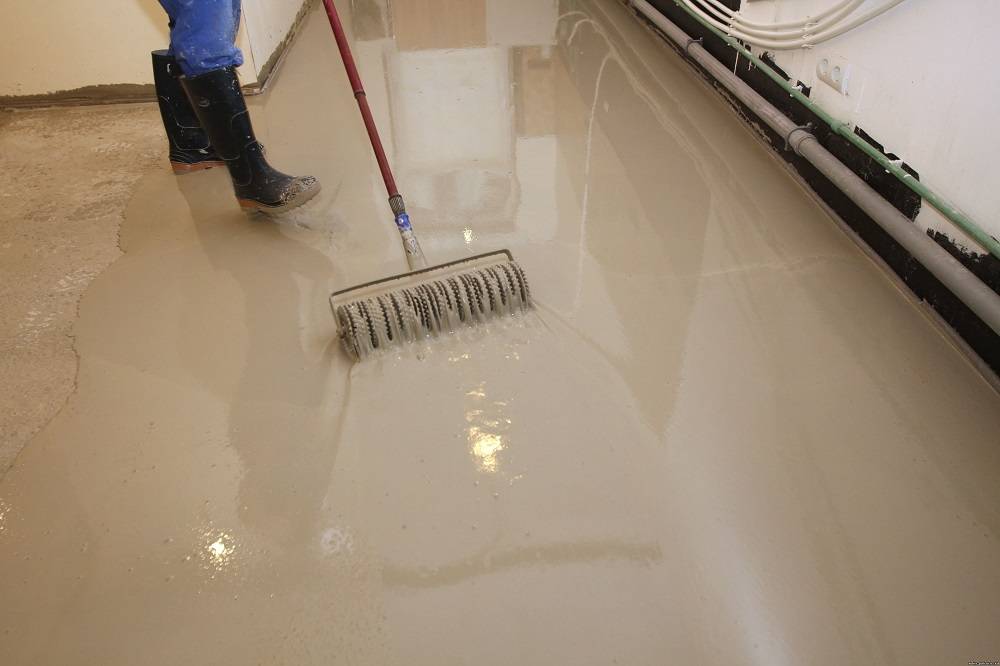 Как выровнять бетонный пол под линолеум мокрой стяжкой — последовательность действий схожа с устройством полусухой стяжки: