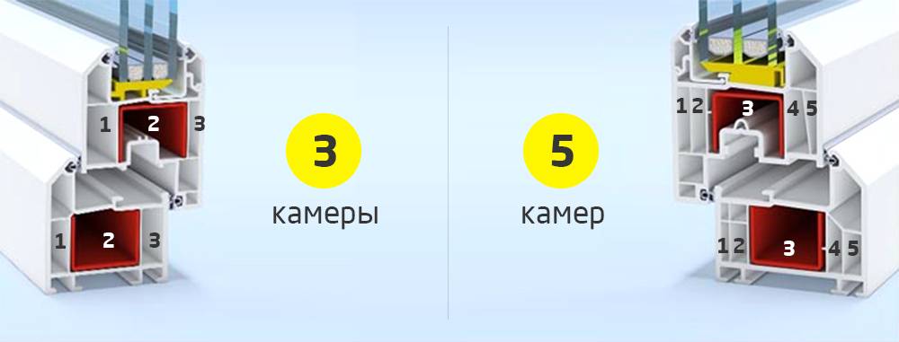 - шести- и семикамерные конструкции существуют, но их устанавливать не рекомендуется, поскольку качество и теплопроводность будет соответствовать пятикамерным видам, но придется затратить больше денег.
