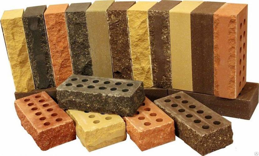 Поверхность кирпичей для отделки может быть различной: ровной, матовой либо под всевозможные фактуры — дерево или камень. Благодаря особым технологиям окрашивается вся смесь либо определенная сторона.