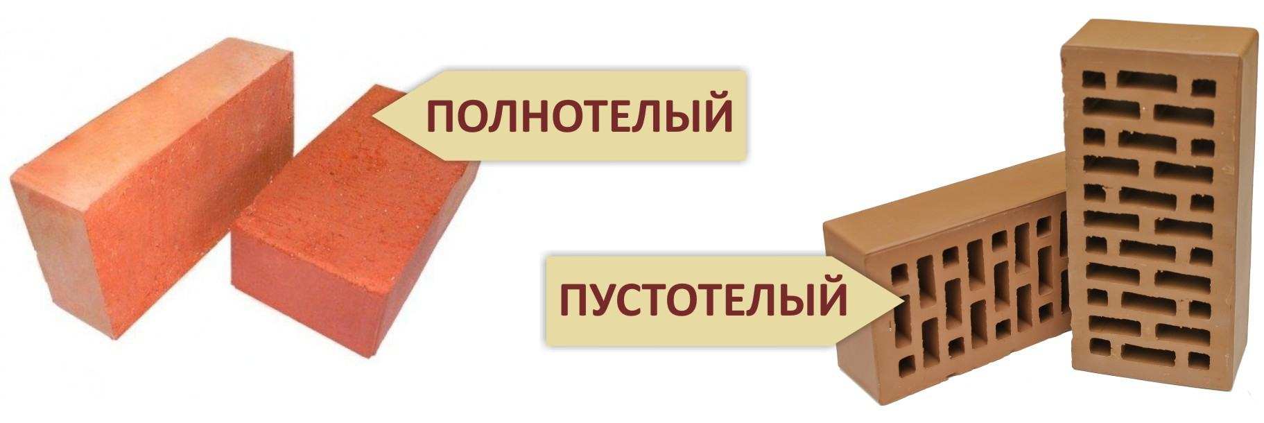 По наличию пустот материал разделяется на пустотелый и полнотелый. Чем больше пустот в материале, тем более высокими качествами теплоизоляции он будет обладать. Пустотелый отлично подходит для возведения наружных стен здания. Полнотелый же кирпич обычно применяют во время построения цокольных этажей и фундамента, т. к. такой материал способен выдержать большие нагрузки.