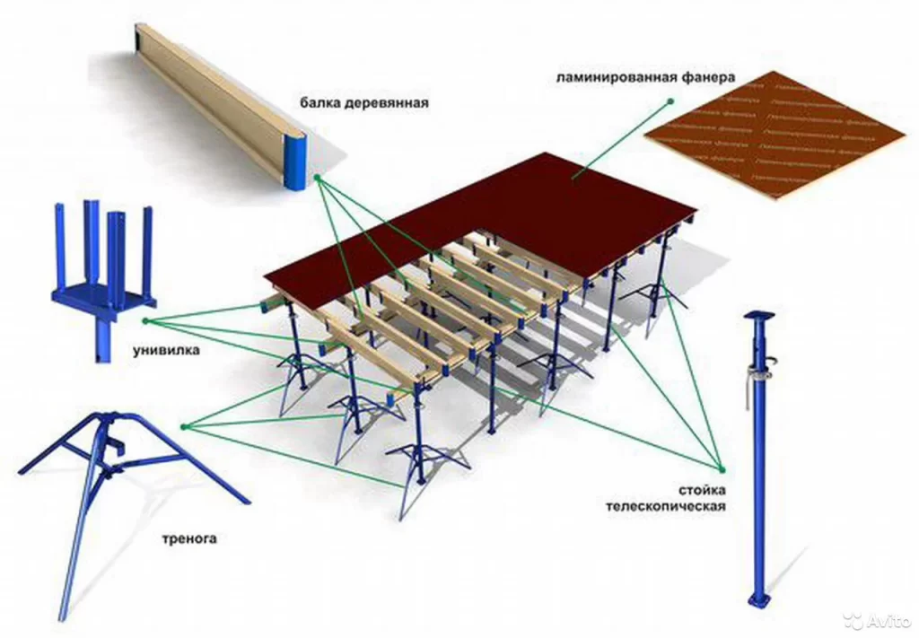Устройство опалубки перекрытий на телескопических стойках