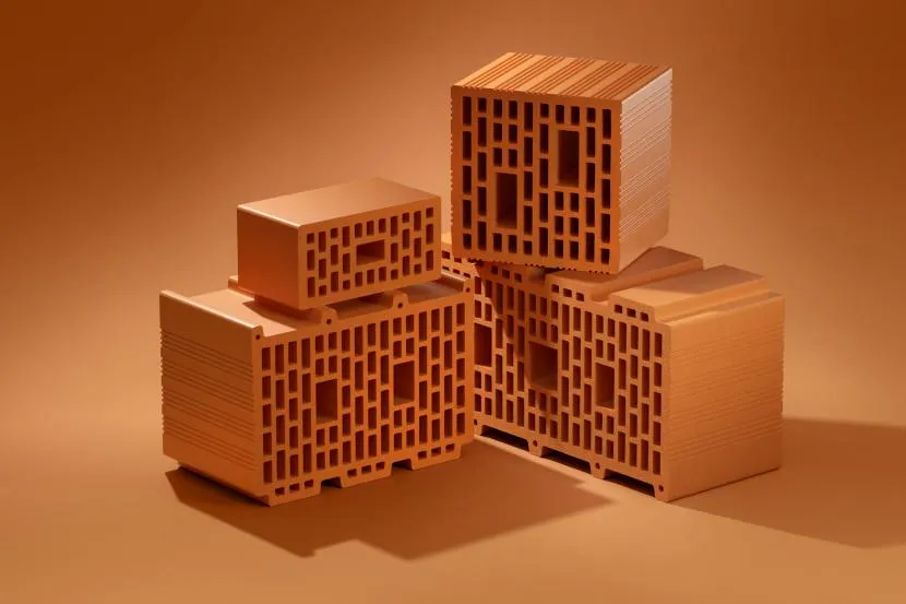 Керамоблоки представляют собой прямоугольной формы модули микропористой структуры с полостями внутри. Изготавливаются они путём формовки глиняной смеси и последующим обжигом. При этом пустоты формируются благодаря включению в массу заготовки специальных элементов из выгораемого в ходе термической обработки материала.