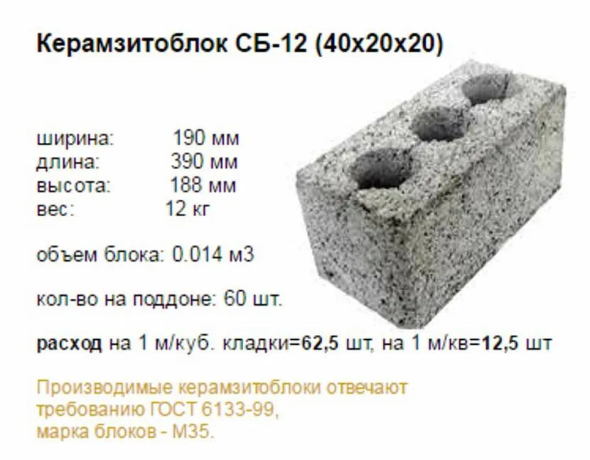 Размеры блоков из керамзитобетона. По установленным стандартам они бывают:
