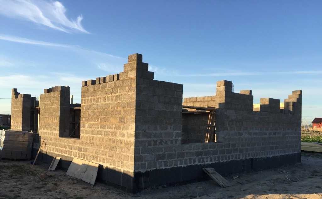 Для несущих и ограждающих конструкций используется блок марки от М50. Для перегородок в доме – перегородочный материал. Блоки кладутся на цементный раствор. По рекомендациям владельцев домов каждый пятый ряд кладки армируется. Работы начинаются с выгонки углов, потом продвигаются вдоль стены.