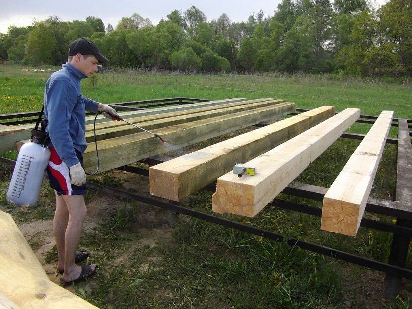 Древесина обычного бруса нуждается в обработке антисептиком, впрочем, как и профилированный брус нужно дополнительно защищатьИсточник urspraha-stavebnictvi.cz