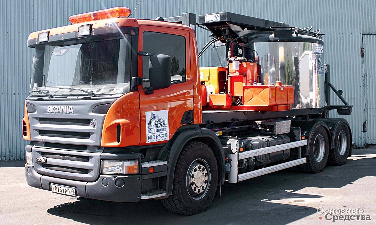 Для производства кохеров в компании «Коминвест-АКМТ» используют оборудование немецкой фирмы AGT GmbH, устанавливая его на российские и импортные шасси. Два варианта: горизонтальное и вертикальное исполнение цилиндра, вместимость – 5 м3, масса перевозимого асфальта – не менее 12 т. Привод агрегатов от автономного двигателя, поддерживаемая температура смеси в бункере – до 240 °С. Осенью прошлого года специалисты ЗАО «Коминвест-АКМТ» представили кохер вертикального типа, закрепленный на раме для установки на автомобиль крюковым захватом типа «мультилифт». Применение машин, оборудованных таким манипулятором, имеет большие перспективы, и еще один сменный «кузов» придется по душе предприятиям по благоустройству, которые уже оценили достоинства «мультилифтов». В место ремонта асфальт подается из разгрузочного окна по желобу, аналогично термос-бункерам для горячей асфальтобетонной смеси.