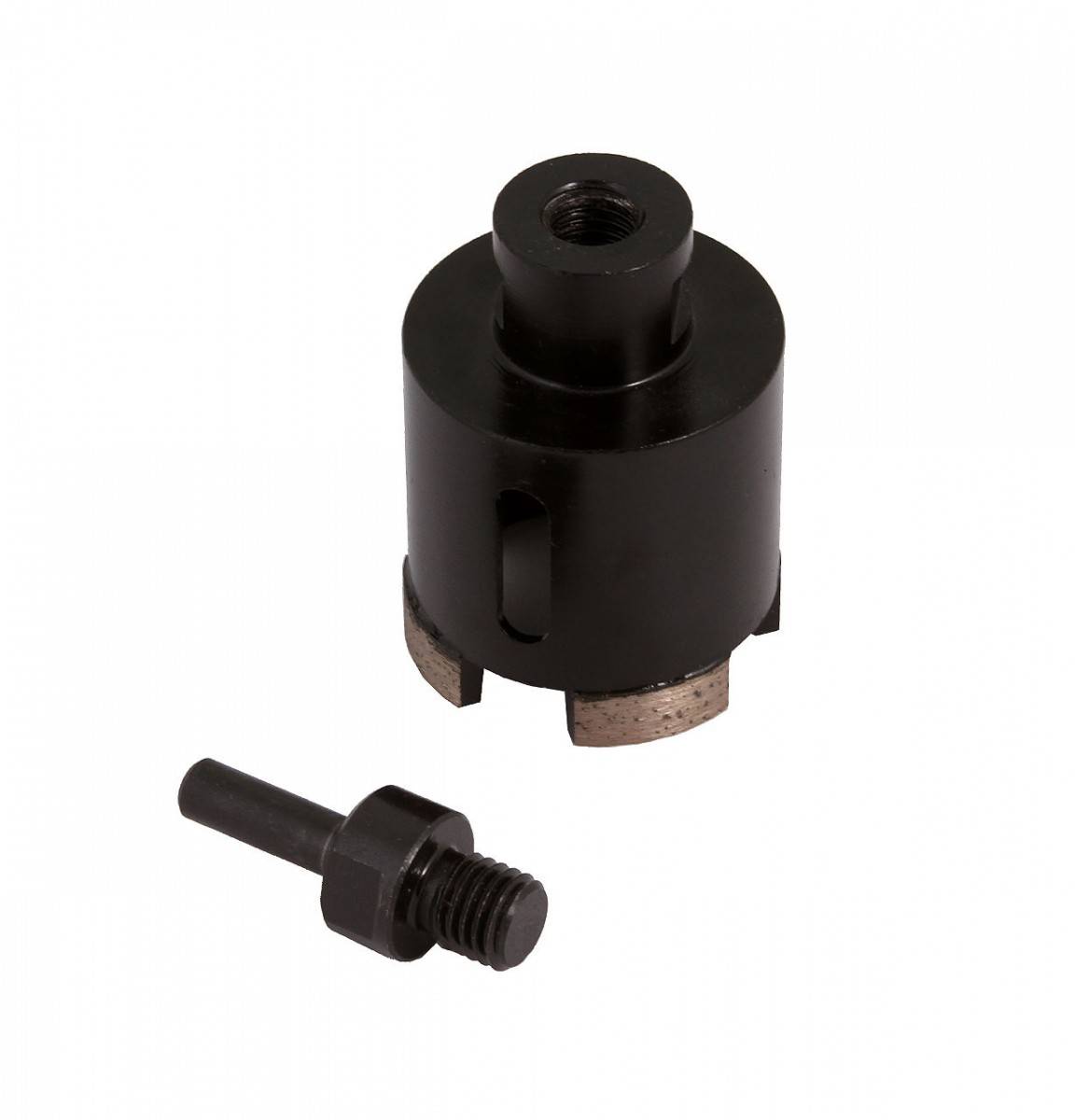 Но, что делать в тех случаях, когда стена облицована керамической плиткой, ведь победитовая коронка может её просто разбить, особенно, если кафель низкого качества. Здесь на помощь придёт алмазная коронка для бетона, которая может продаваться либо отдельно, либо в комплекте, где на одном держателе расположены кольца от 20 мм до 100 мм, несмотря на то, что в этих двух вариантах прочность самой коронки разная — качество сверления от этого не страдает.