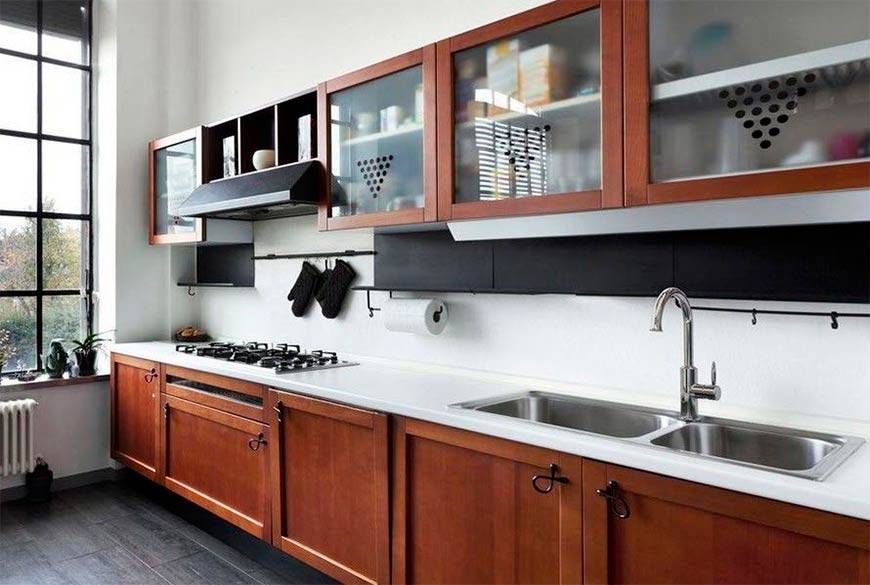 Второй момент также связан с внешним видом. Несмотря на стилевое разнообразие (в каталоге представлена кухонные гарнитуры от кантри-стиля до фьюжна), мебель обладает минималистичными чертами, которые могут ограничить полет фантазии творческих хозяев. Стандартизированный дизайн объясняется практичностью, функциональностью и удобством при уборке, так что каждый должен определить для себя, что в приоритете.