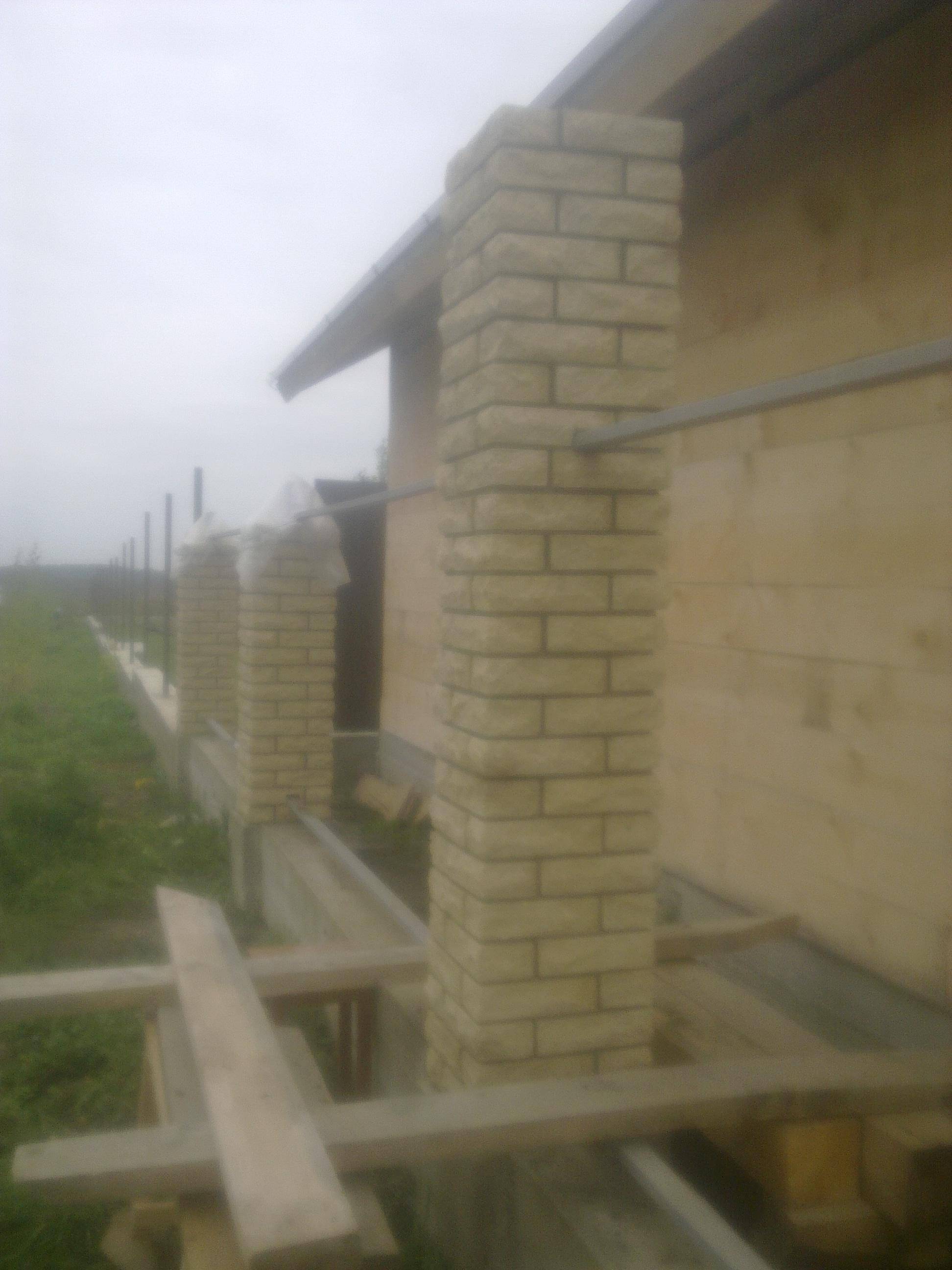 Когда фундамент окончательно высохнет, продолжаются строительные работы по возведению опор. Чтобы защитить фундаментные площадки под столбы от влаги, стоит покрыть их битумно-полимерным материалом, например, праймером. Далее выкладывается кирпичная основа опоры. Чтобы кладка получилась ровной, рекомендуется воспользоваться железной арматурой. При желании надежнее укрепить столбы, в полость кирпичной опоры следует залить бетонный раствор.