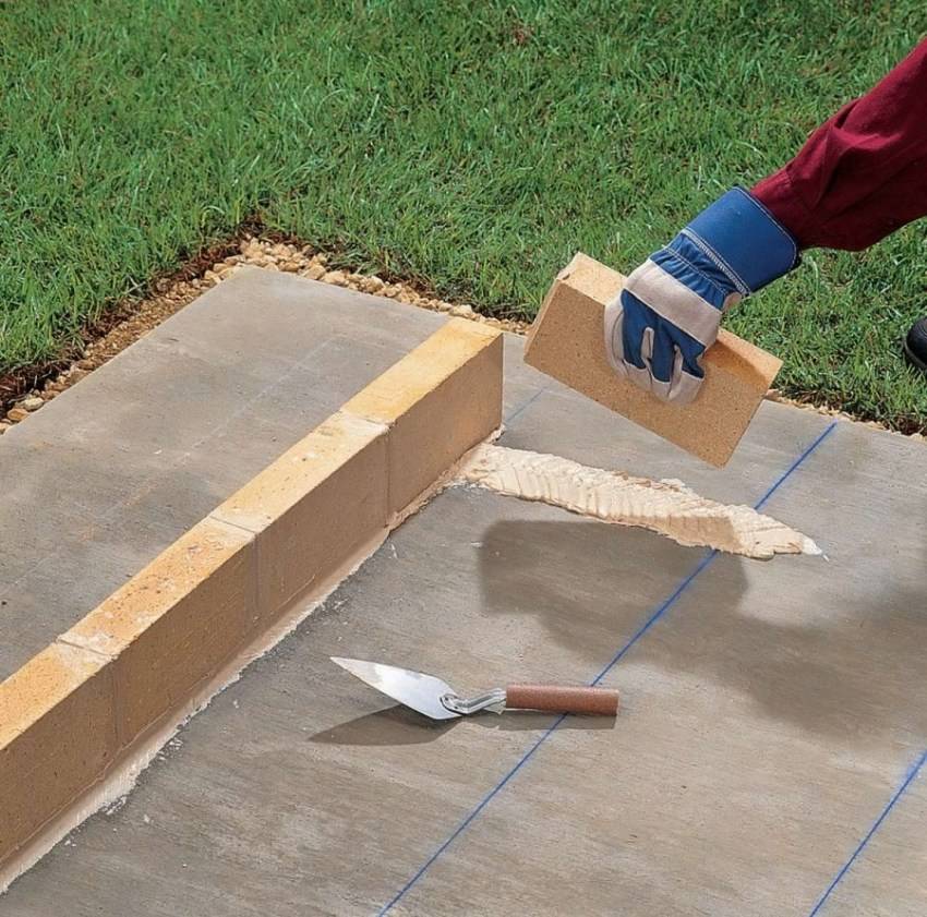Далее выкладывается бортик по всем четырем сторонам, на него будут укладываться шампуры с шашлыками.