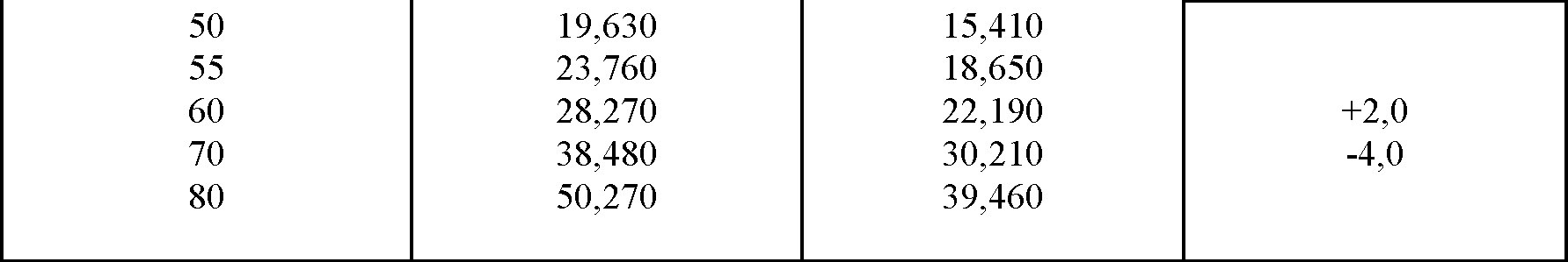 | Разрывное усилие (максимальное), H (кгс) | 12600 (1285) | 21400 (2180) | 32800 (3340) | 47300 (4820) | 60400 (6160) | 74000 (7540) | |