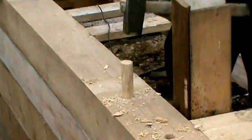 Под брус последовательно наносят гидроизоляцию, укладывают рубероид, после чего можно бурить отверстия 25-30 мм под дубовые нагели на глубину 70-80 см. Остается залить клей и закрепить стержни. Верхушки стержней спиливаются, внутрь заворачивается столярный саморез, позволяющий расклинить нагель, и тем самым жестко закрепить мауэрлат. На первый взгляд, данный способ создает впечатление самого ненадежного, но практика установки мауэрлата говорит об обратном. Особенно, если вспомнить, что большинство брусовых домов собираются с использованием нагелей.
