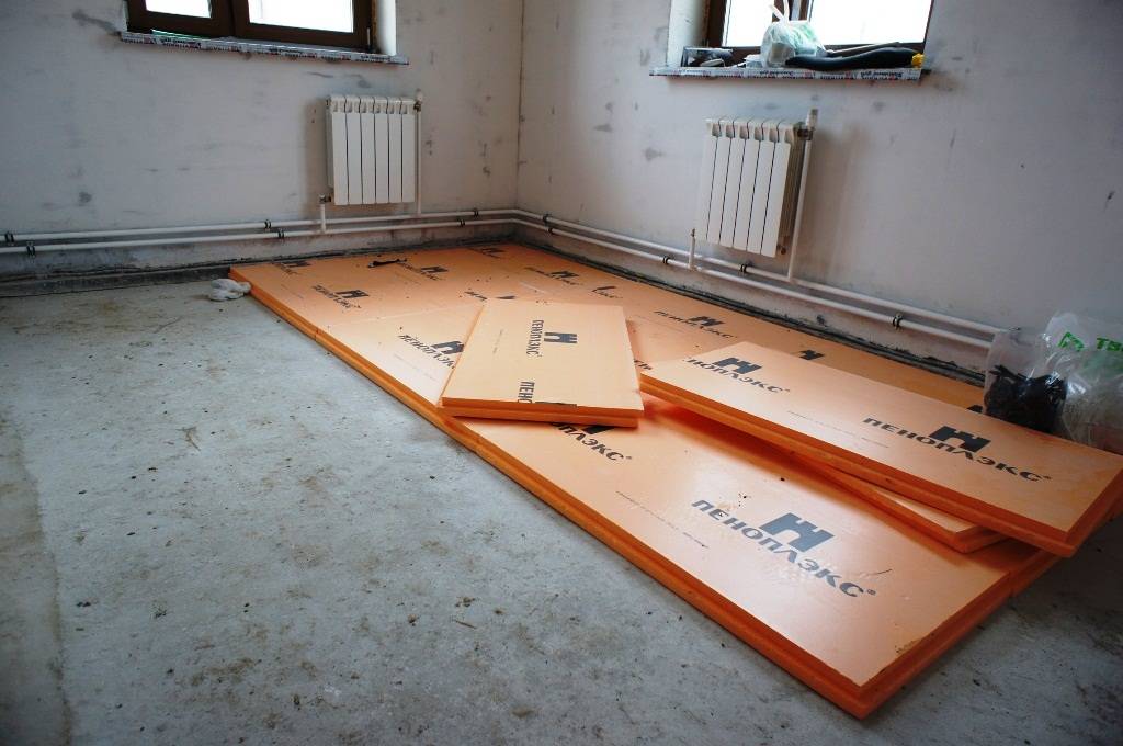 - На поверхность выкладываются плиты пеноплекса. Допускается делать это всухую или на специальный раствор.