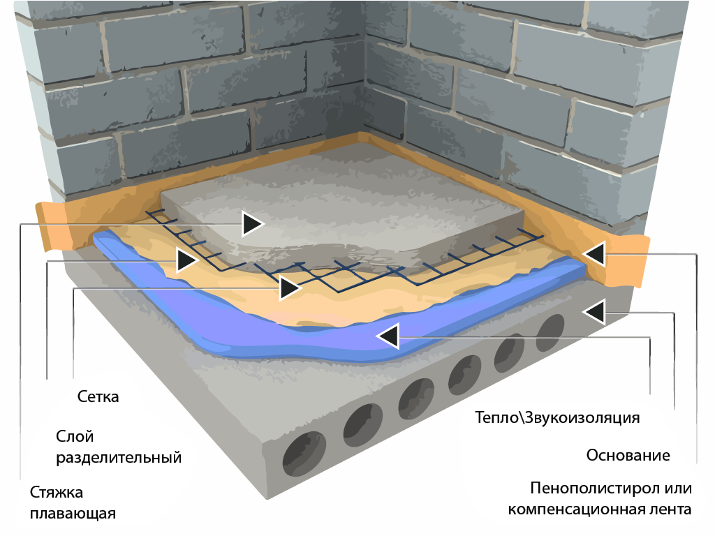 Согласно СНиП 2.03.13-88, стяжка — это специальный слой, который соединяет черновое основание пола с финишным напольным покрытием. Основным предназначением стяжки является: