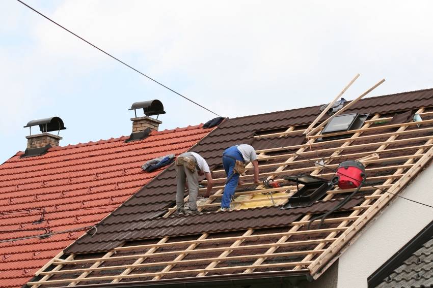 Монтаж кровли из металлочерепицы начинается с установки стропильной системы.