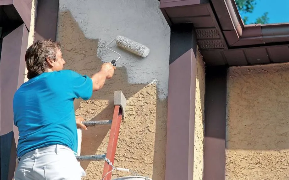Для покраски оштукатуренного дома снаружи применяют специальные красители, на этикетке которых имеется пометка «для фасадных работ». Вопрос, почему составы для фасадов выделены в отдельную категорию, кроется в условиях эксплуатации. Красящий слой круглогодично подвергается природным воздействиям, поэтому от него требуется особый набор качеств.