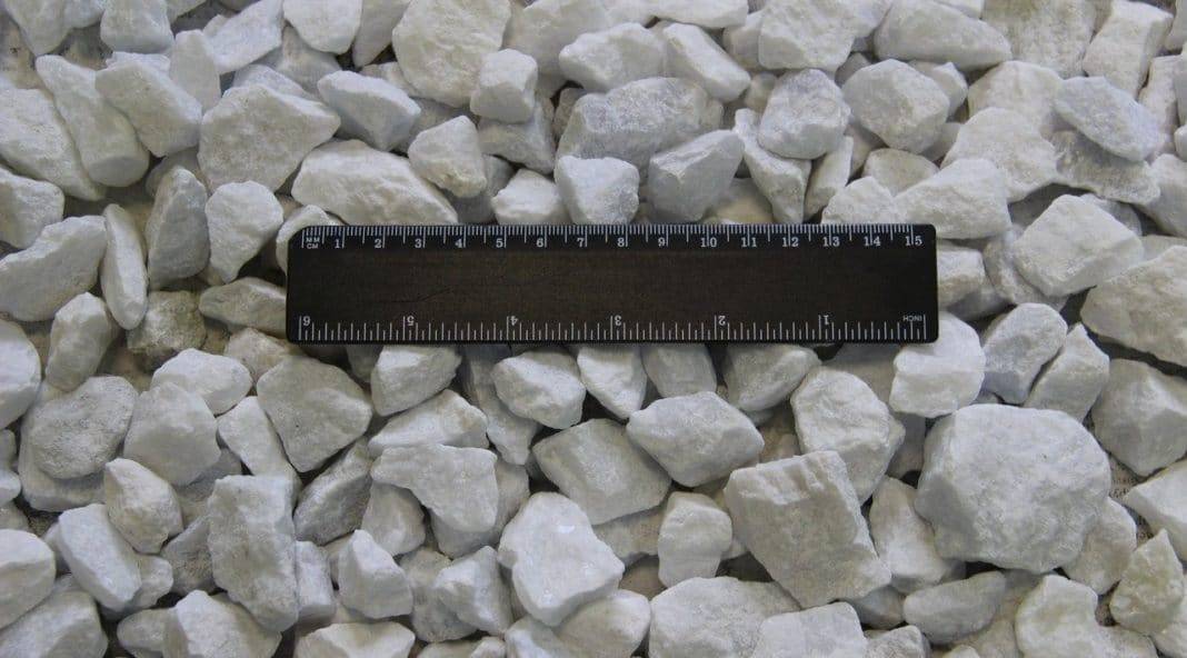 Щебень вторичный белый может быть изготовлен из известняка или белого мрамора. Камни белого цвета, также как при производстве любого другого вторичного щебня перемалываются в дробилке, а затем успешно используются при: