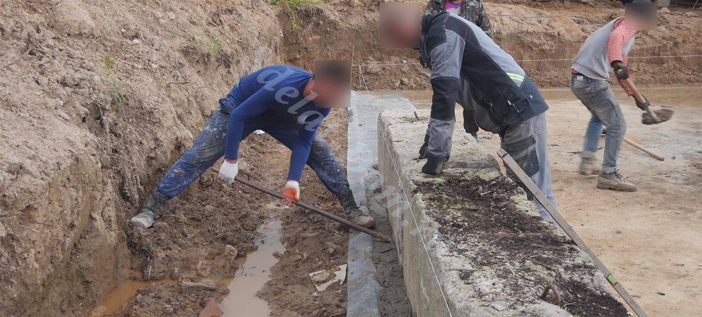 - Рытье котлована и выравнивание его дна. При необходимости стенки фундамента дополнительно укрепляются закладным или шпунтовым методом.