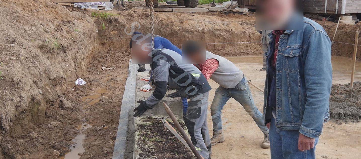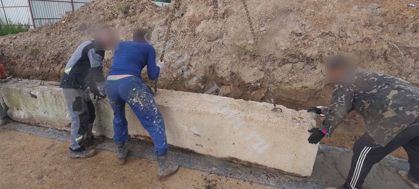 Земляной этап – стандартен. Необходимо вырыть траншею глубиной ниже точки промерзания грунтов на участке. Затем на ее дне делается утрамбованная из песка толщиной 30–40 см подушка для последующей укладки плит ФЛ