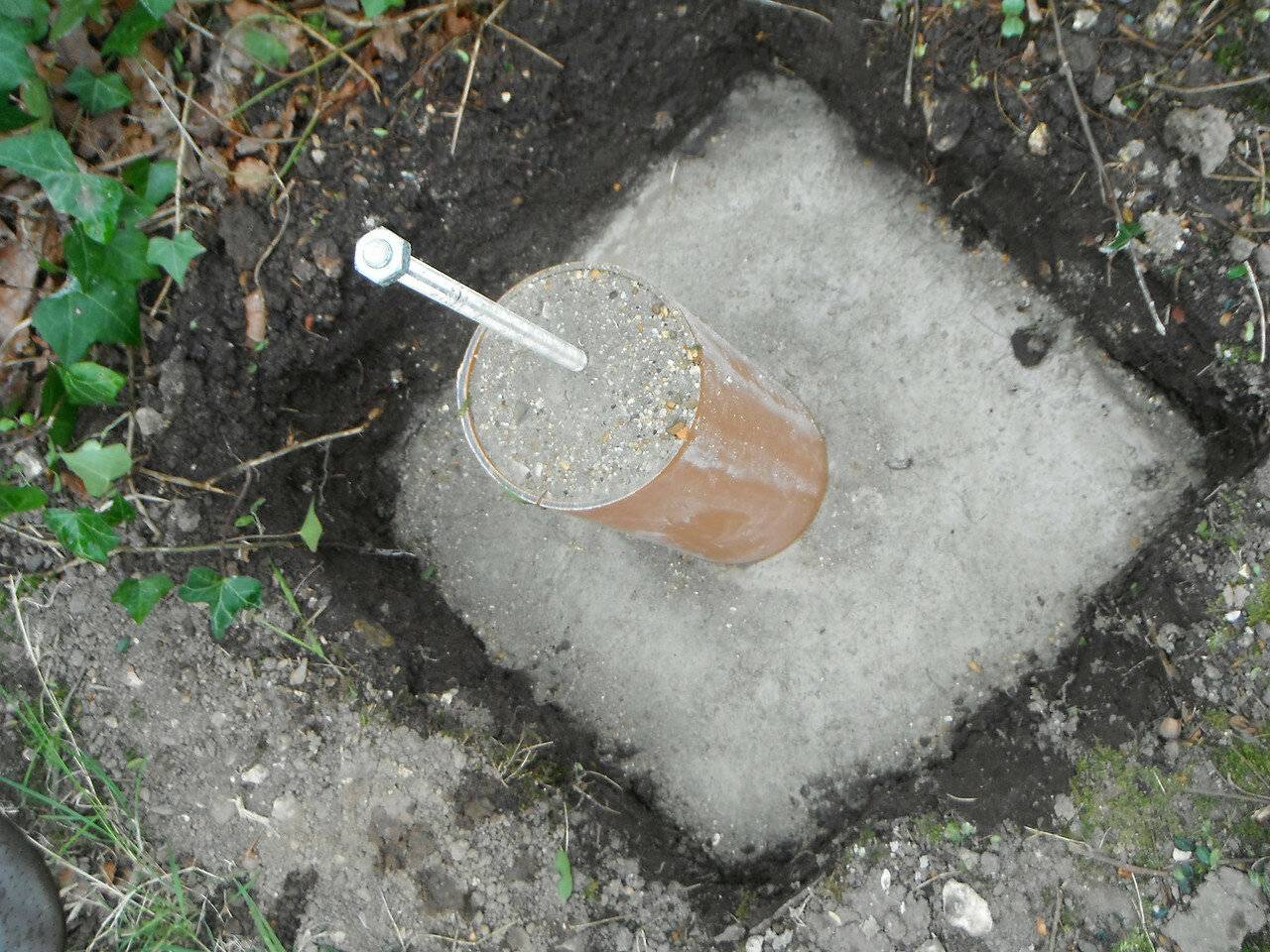 - Внутрь всех труб помещают армированный каркас с тем условием, чтобы прутья выглядывали из ямы на 20 см. Остаток раствора укладывается слоями до нулевой отметки, при этом правильно будет подвергать основание периодической вибропрессовке.