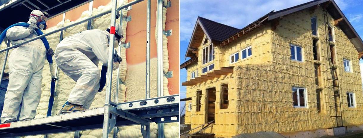У пены для утепления стен есть ряд плюсов в виде хорошей адгезии, она прилипает практически ко всем поверхностям намертво, заполняет трещины, щели. Но устойчивости к УФ-лучам нет, паропроницаемость низкая. Поэтому влага будет выходить с трудом, понижая теплосберегающие свойства стен. ППУ используют на участке кладки не выше цоколя и то при условии облицовки.