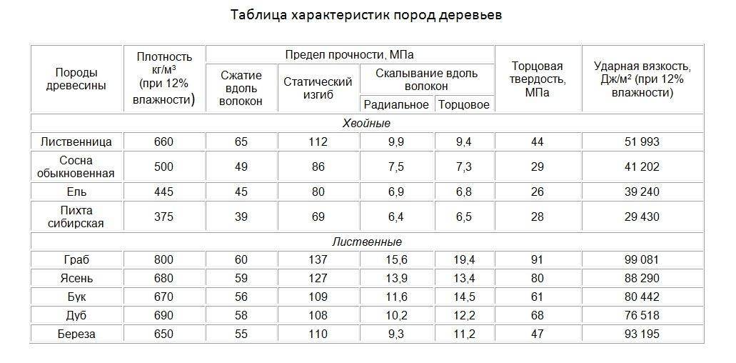 Основные эксплуатационные характеристики древесины, используемой в строительстве: