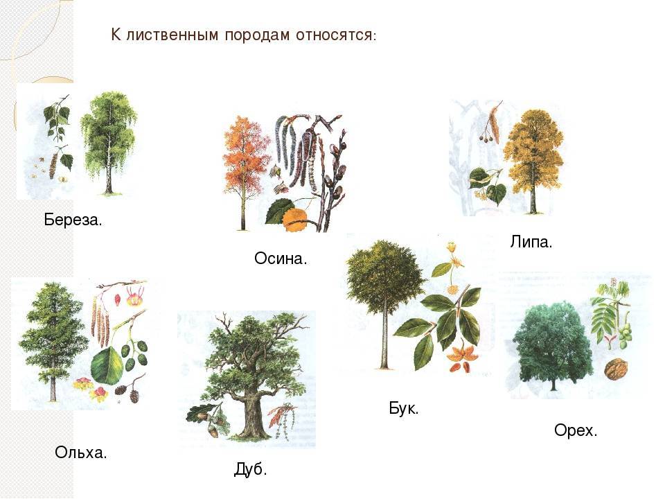 Ель, лиственница европейская, лиственница сибирская, пихта, береза, дуб, вяз, бук, ясень