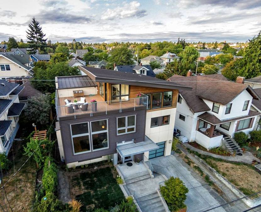 Современный коттедж с эксплуатируемой крышейИсточник architizer.com