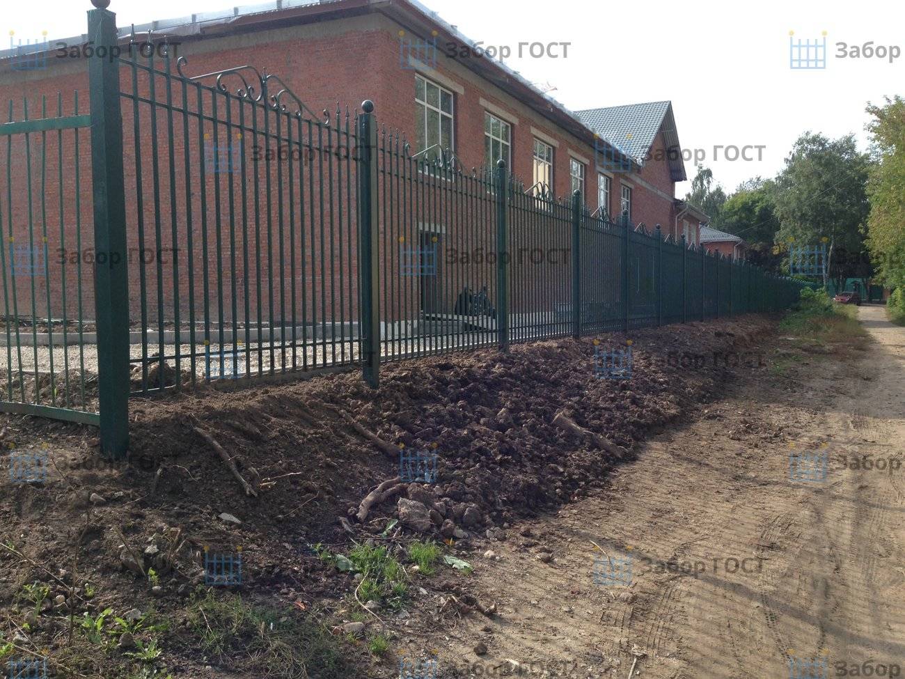 Как видно на фото забор из металлических прутьев является лишь частью мероприятий в рамках благоустройства территории частного лицея. В планах заказчика – обновление экстерьера: асфальтирование площадей, устройство газонов, фасадные работы. Ограждение в данной ситуации стало отправной точкой для принятия дальнейших решений по приведению объекта в надлежащий вид.