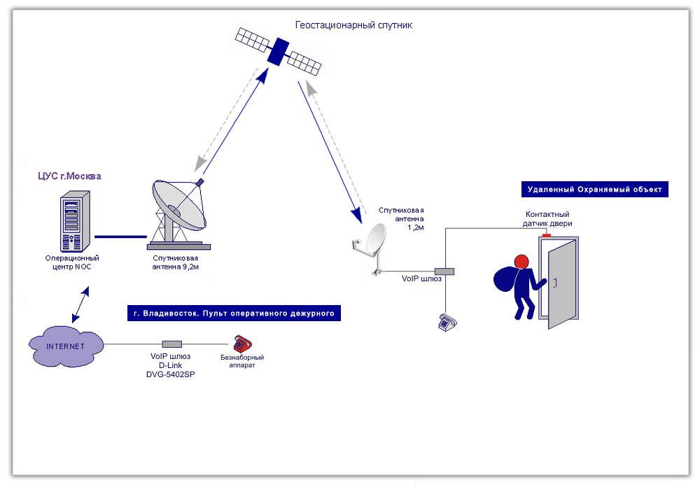 Данный вид представляет собой связь по каналу спутника. Дальность, на которую может действовать такого рода сигнализация, неограниченна.