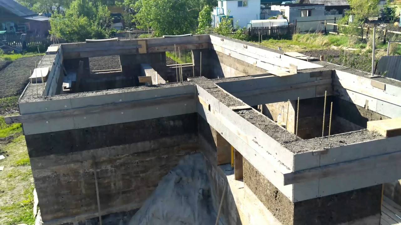 - Поэтажная заливка. В этом случае под фундаментное основание изготавливают несъемную опалубку.
