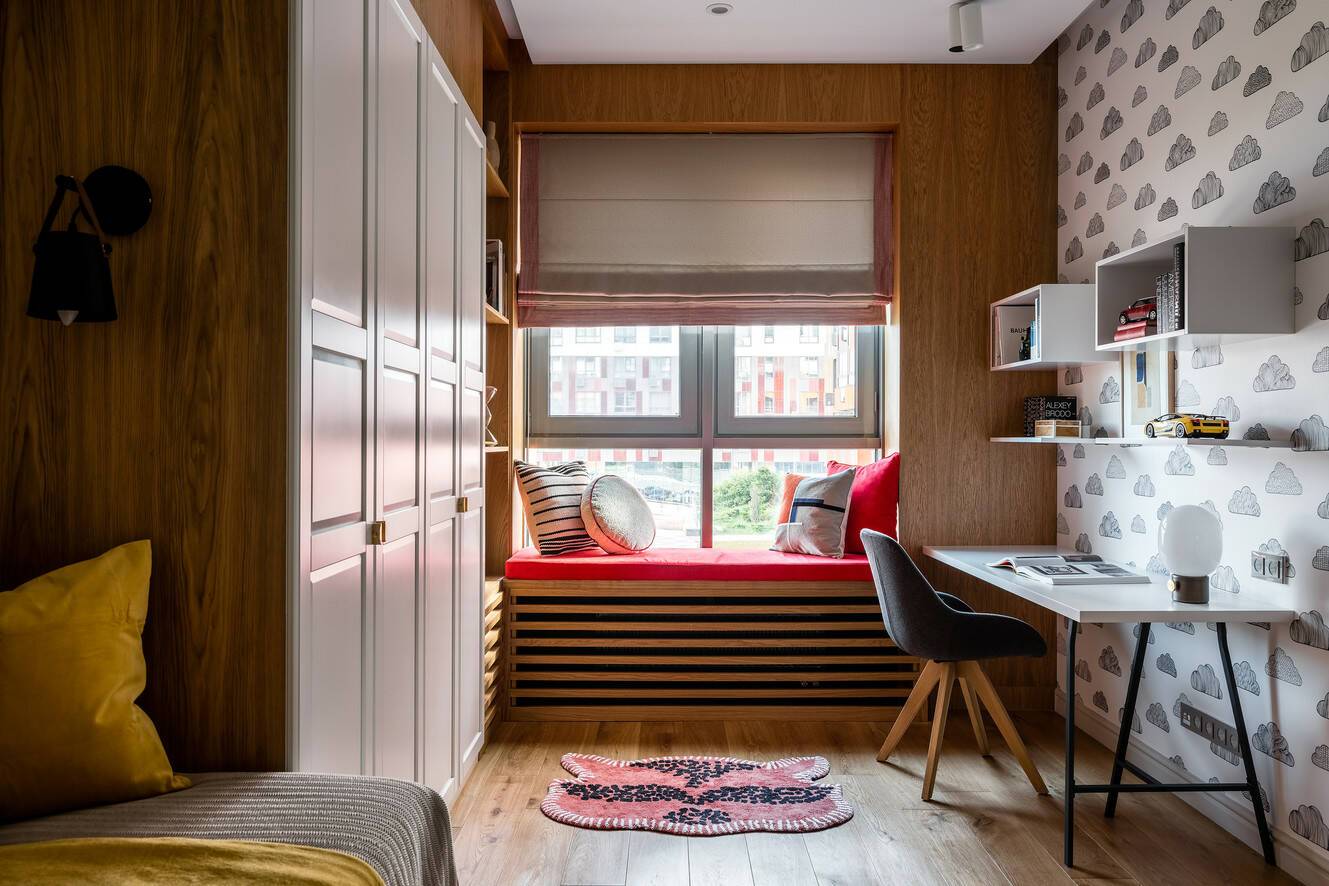 Радиаторы можно закрыть, например, деревянными рейками, так тепло будет продолжать поступать в комнату в достаточном объёме. Студия Make Interiors, дизайнер Влада Петерсон, фотограф Евгений Кулибаба
