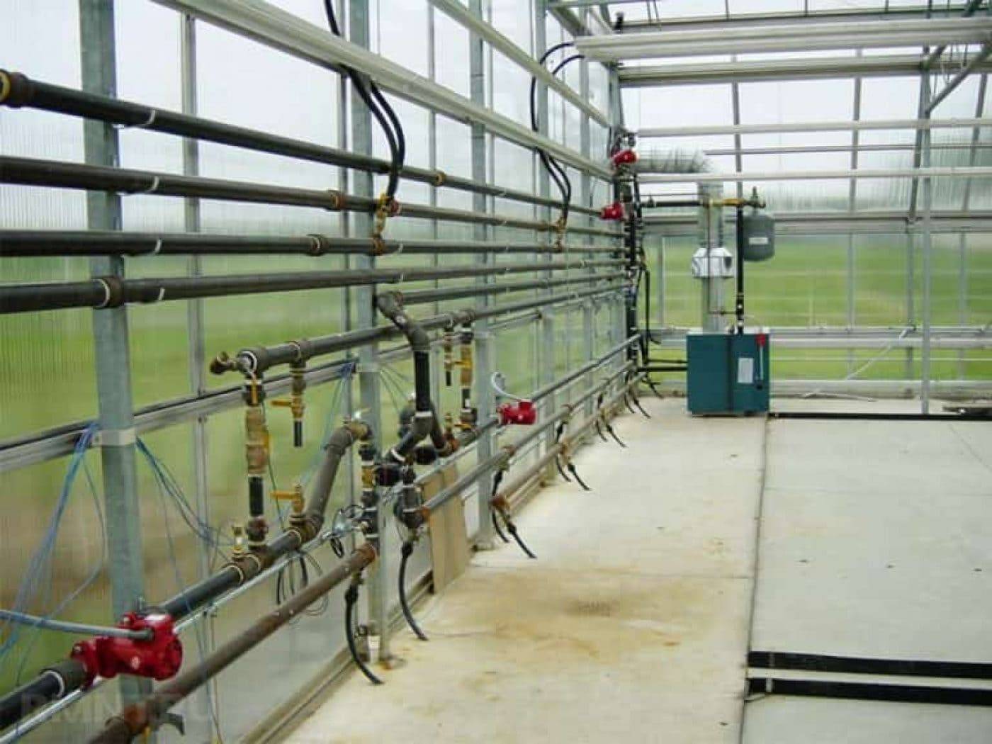 Это может привести к гибели растений или ухудшению их состояния. Такое часто наблюдается, если стоит паровое отопление в теплице. Одним из лучших способов сделать водяное отопление в теплице правильно и безопасно – установка внешних и внутренних трубопроводов. Причем диаметр первых должен составлять от 32 до 40 мм, а внутренних – от 16 до 24. Это позволит добиться равномерного теплового распределения по всему объему помещения.