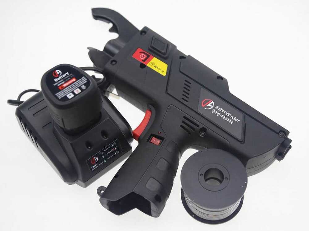 Первые функционируют за счёт аккумуляторов, которые позволяют работать автономно на любых участках. По внешнему виду они похожи на шуруповерт. Благодаря удобной форме, компактным размерам и небольшому весу их можно держать одной рукой во время работы. Они оснащаются сменными катушками с проволокой диаметром 0,8-1,5 м, что упрощает процесс завязывания арматуры и сводит к минимуму расход вязальной проволоки. Кроме того, аккумуляторный пистолет для крепления арматуры после завязывания узла автоматически режет проволоку. Это автоматизирует процесс.