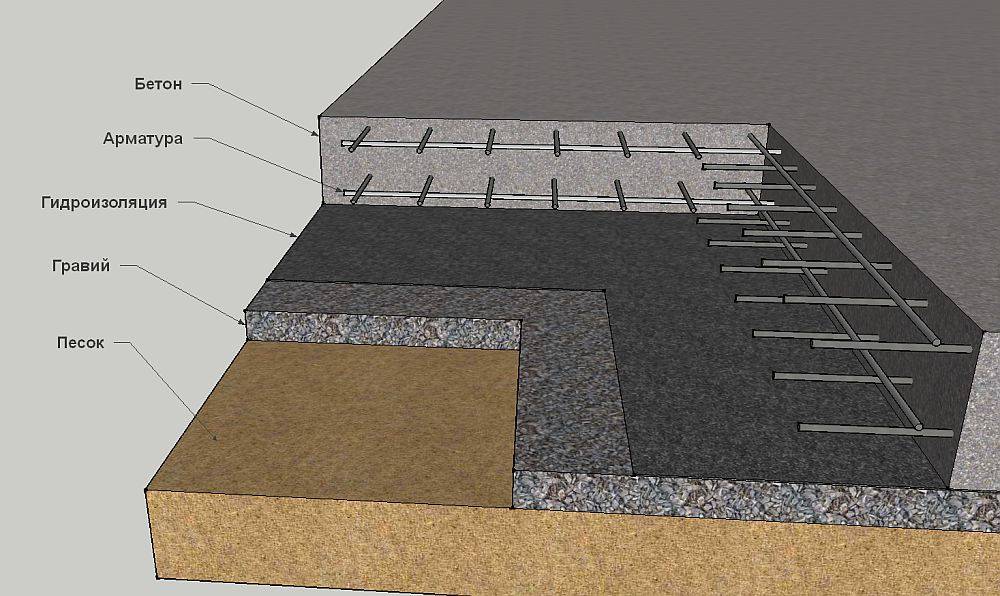 Так как оптимальная толщина (в зависимости от характеристик строения) варьируется в пределах 15-40 см, это необходимо учитывать при снятии грунта и изготовлении опалубки.