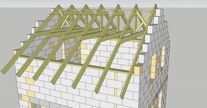 Когда вы завершите вышеуказанные этапы работы, вам необходимо будет убедиться, что вершины всех стропил находятся на одном и том же уровне. Сделать это можно с помощью обычной веревки. Если вы все сделали правильно и результат вас устраивает, укрепите стропила специальными откосами. Без их наличия есть большая вероятность, что стропильные ноги будут провисать. После этого можно приступать к монтажу обрешетки и кровли вашей крыши.