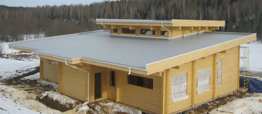 Не стоит забывать и о достаточном уклоне плоской кровли (порядка 3%), а также обустройстве системы водостока для отведения осадков.