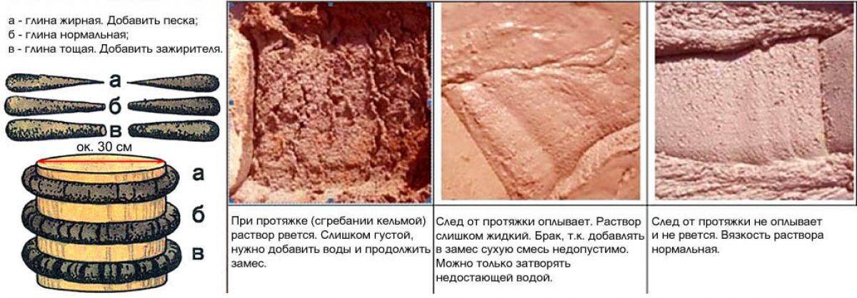 Глиняная лепешка и шар растрескались – неплохой знак, говорящий о жирности глины. В рецепт в таком случае обязательно включают мелкофракционный песок, речной или карьерный, без примесей пыли. Если же трещины на образце-шаре не проявились, то испытывают прочность простым способом – шарики без усилия бросают на бетон, асфальт, брусчатку или любое твердое покрытие с высоты около одного метра. Если глиняные колобки при этом не разбиваются – глина отличная, практически идеальна для самодельной формовки кирпичей. На пластичность и жирность глины проверяют как отработанными, так и индивидуальными тестами.