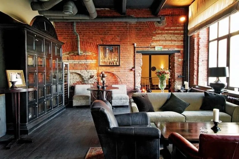 - Брутальность промышленной эстетики. Ее передают разными способами: неоштукатуренный кирпич и бетон стен, оставленные на виду элементы конструкций (водопроводные и вентиляционные трубы, потолочные балки). Характерные черты обстановки – сдержанный декор, деревянная и металлическая мебель.