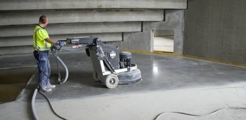 Шлифовка бетона помогает устранить незначительные дефекты и эффективно очистить покрытие