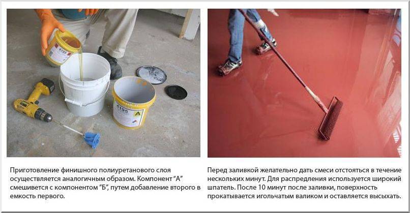 - Нанесение полиуретановой грунтовки. Это делается при помощи подготовленного двух- или однокомпонентного состава. Составляющие смешиваются в пропорции, которая указывается производителем. Следует учитывать, что каждый изготовитель определяет необходимое количество слоев и время их высыхания. Процесс нанесения практически повторяет работу со стандартными смесями.