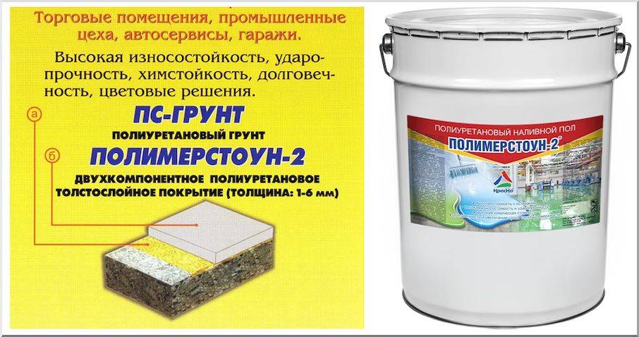 Наибольшей известностью среди многих составов пользуется наливной полиуретановый пол Полимерстоун-2, отличающийся хорошей механической прочностью и эластичностью. Материал лучше всего использовать для объектов, к которым имеются особые требования в плане химической и абразивной стойкости покрытия