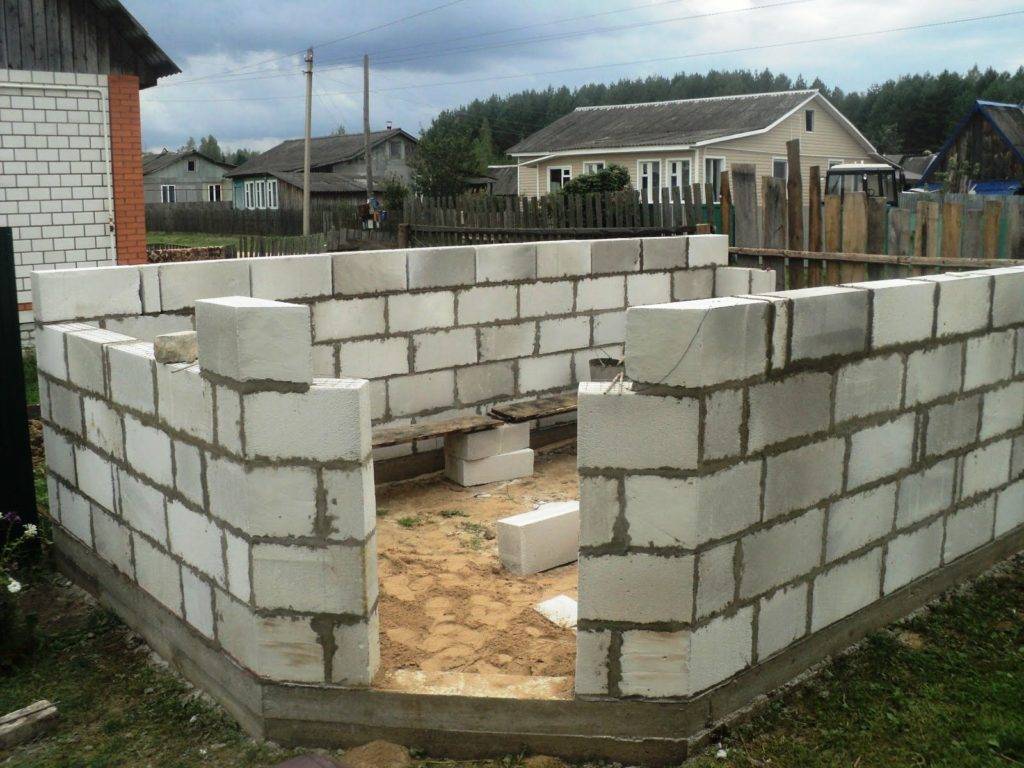 В зависимости от климатического района проживания и назначения пристройки, определяемся с толщиной стен. Так для жилых помещений, как правило, используется кладка в два блока, для остальных пристроек достаточно будет одного: