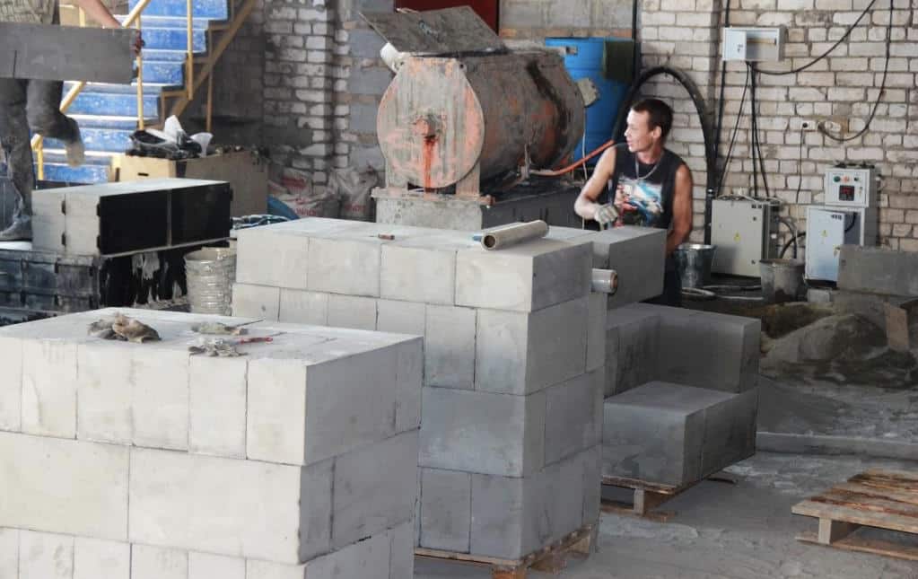 - Запуск производства. Изготовление пробной партии блоков, устранение неполадок при необходимости. Корректировка состава. При стабильной работе оборудования – производство в соответствии с возможной мощностью.