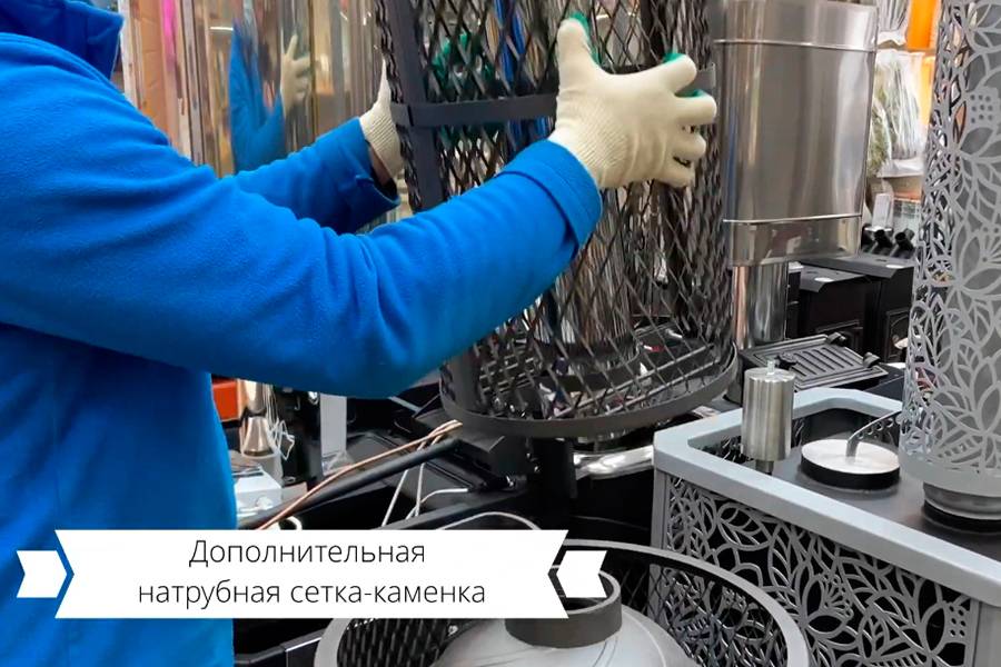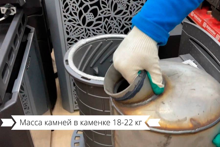 - масса камней во внутренней каменке — 25 кг, в сетке — 180 кг (для одной из моделей — 60 кг);